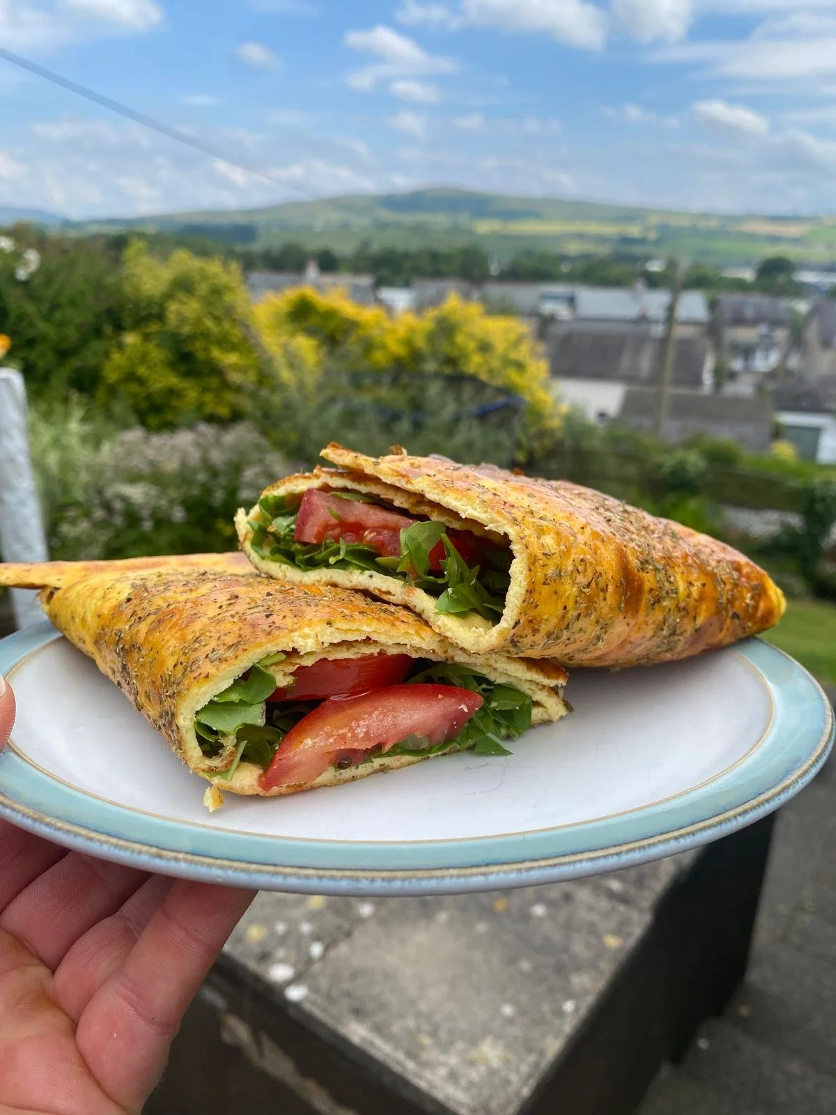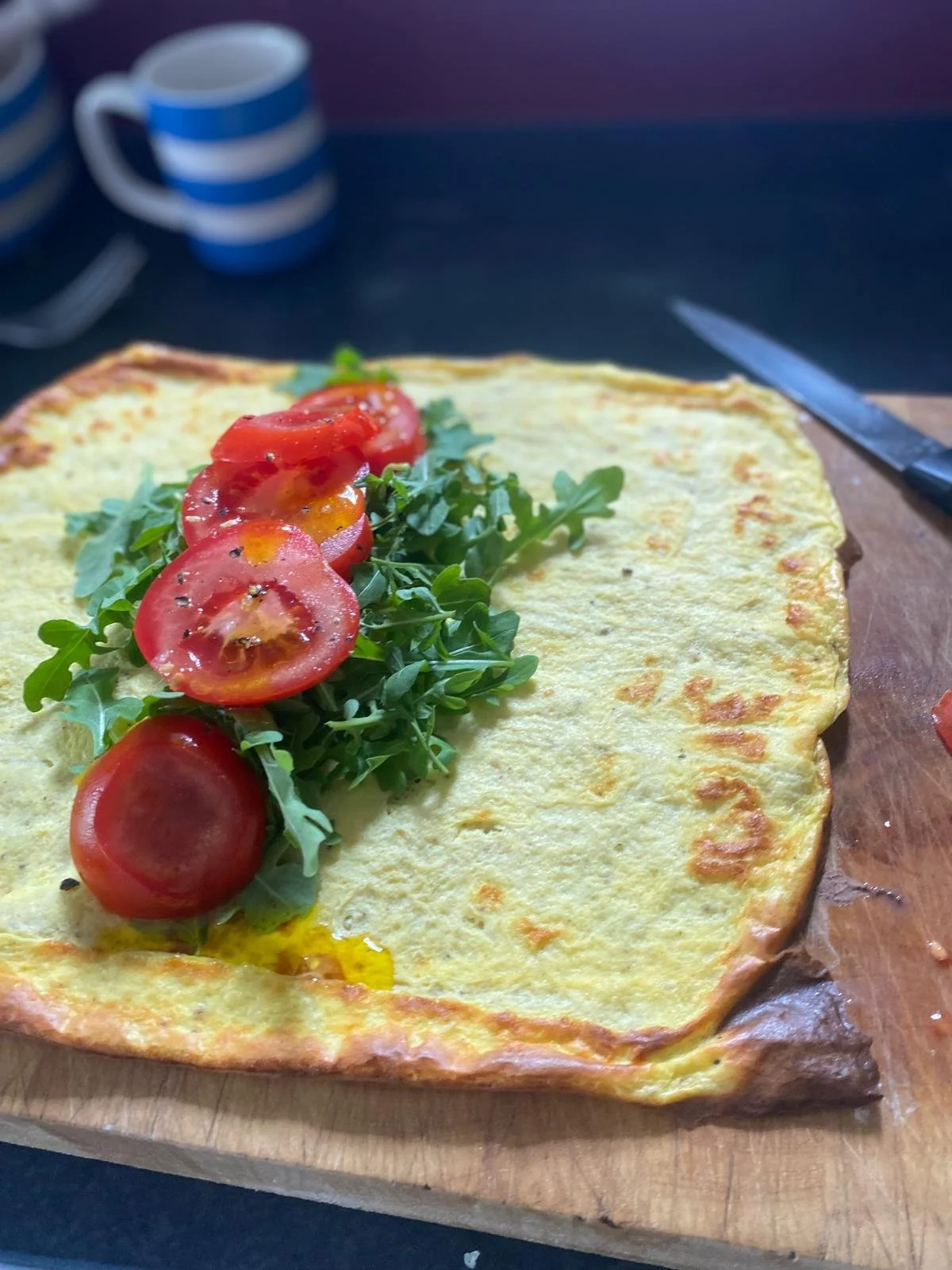 I’ve enjoyed stuffed with rocket, tomatoes, avocado and balsamic. It’s big, but you won’t need anything else and it’ll keep you full for hours. You could in half and share it, but my husband turned his nose up at it when I told him what was in it 😂